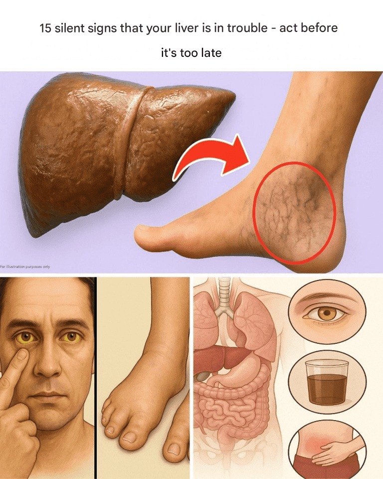 Here are 15 silent or subtle signs that your liver may be in trouble — often before major symptoms appear. The liver does a lot (detoxifies blood, aids digestion, stores nutrients), and problems may develop quietly. (Mayo Clinic)