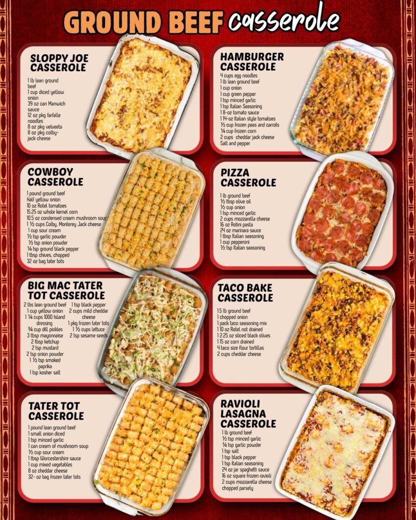 Here’s a classic old-fashioned Ground Beef Casserole — simple, hearty, and perfect for busy nights or feeding a crowd 🥘