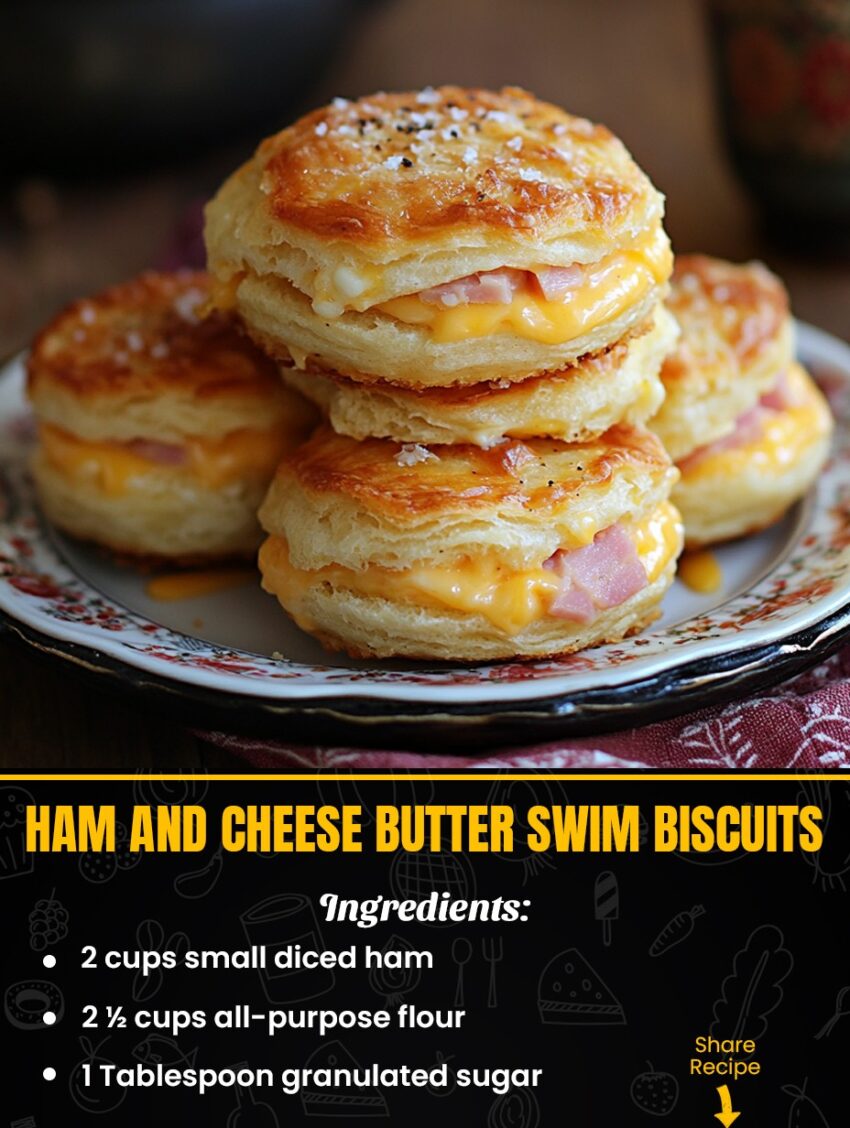 Ham and Cheese Butter Swim Biscuits are ultra-soft, fluffy biscuits that literally bake while swimming in butter—and adding ham and cheese turns them into a perfect savory breakfast or dinner side.