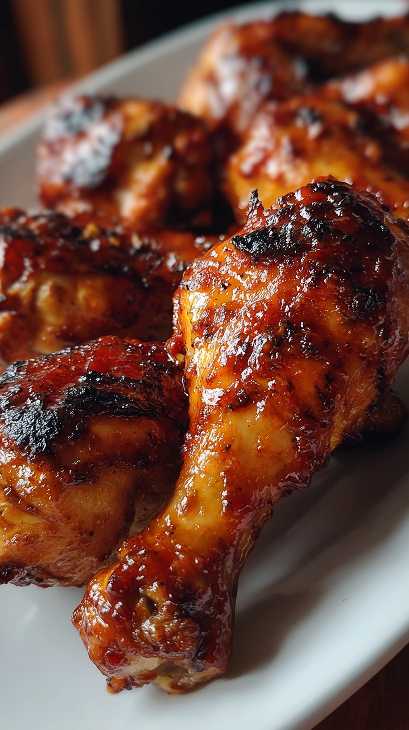 - Return to oven and bake an additional 15–20 minutes, brushing halfway through, until chicken is cooked through (internal temp 165°F / 74°C) and caramelized.