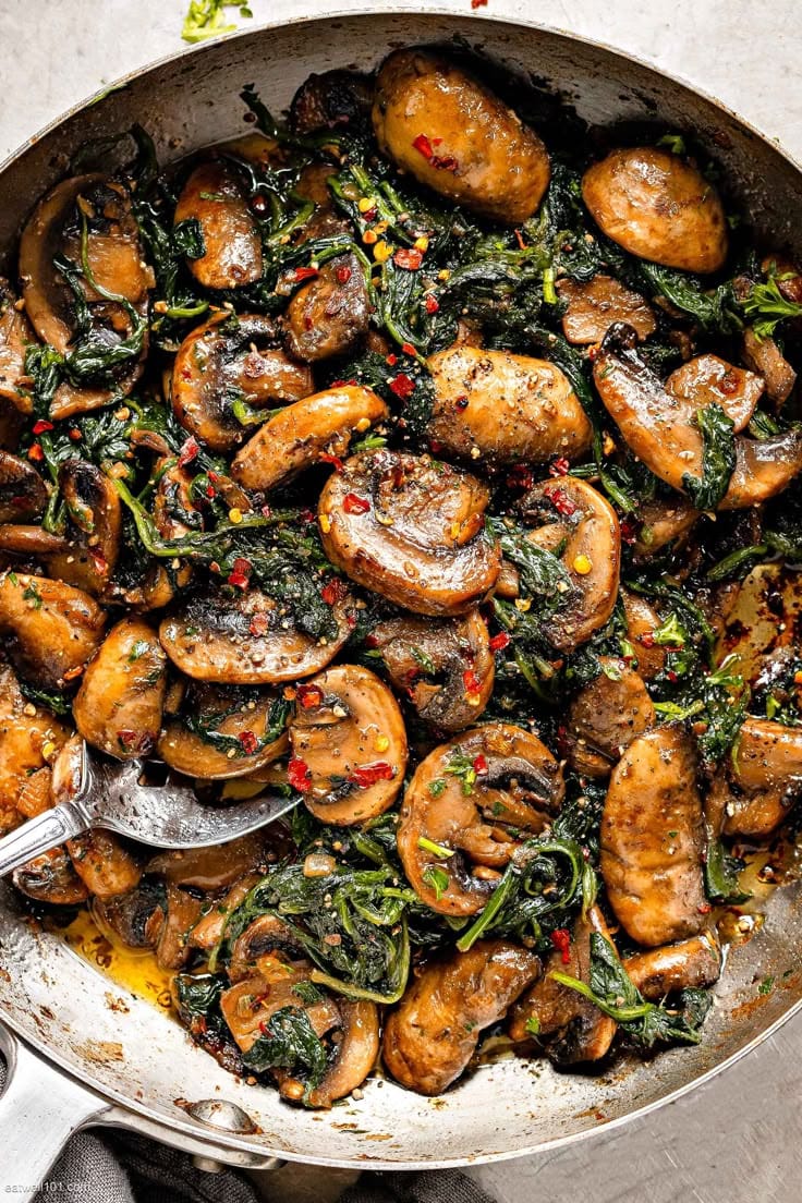 🍄 Mushroom & Spinach Sauté (Serves 2–3)