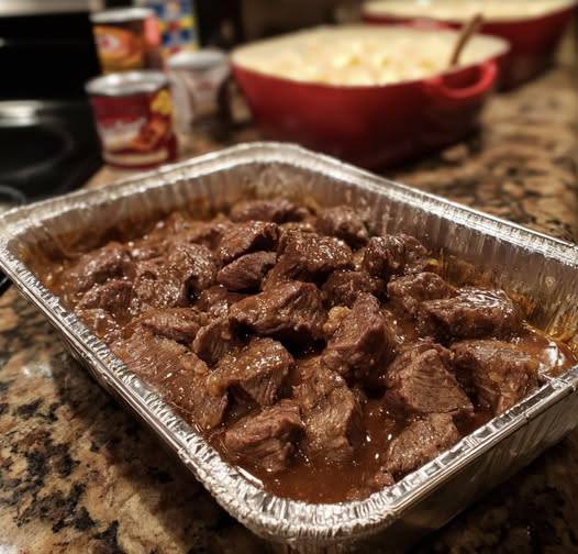 Here’s the classic No-Peek Beef Tips recipe — tender, savory, and hands-off comfort food 🥩🍄
