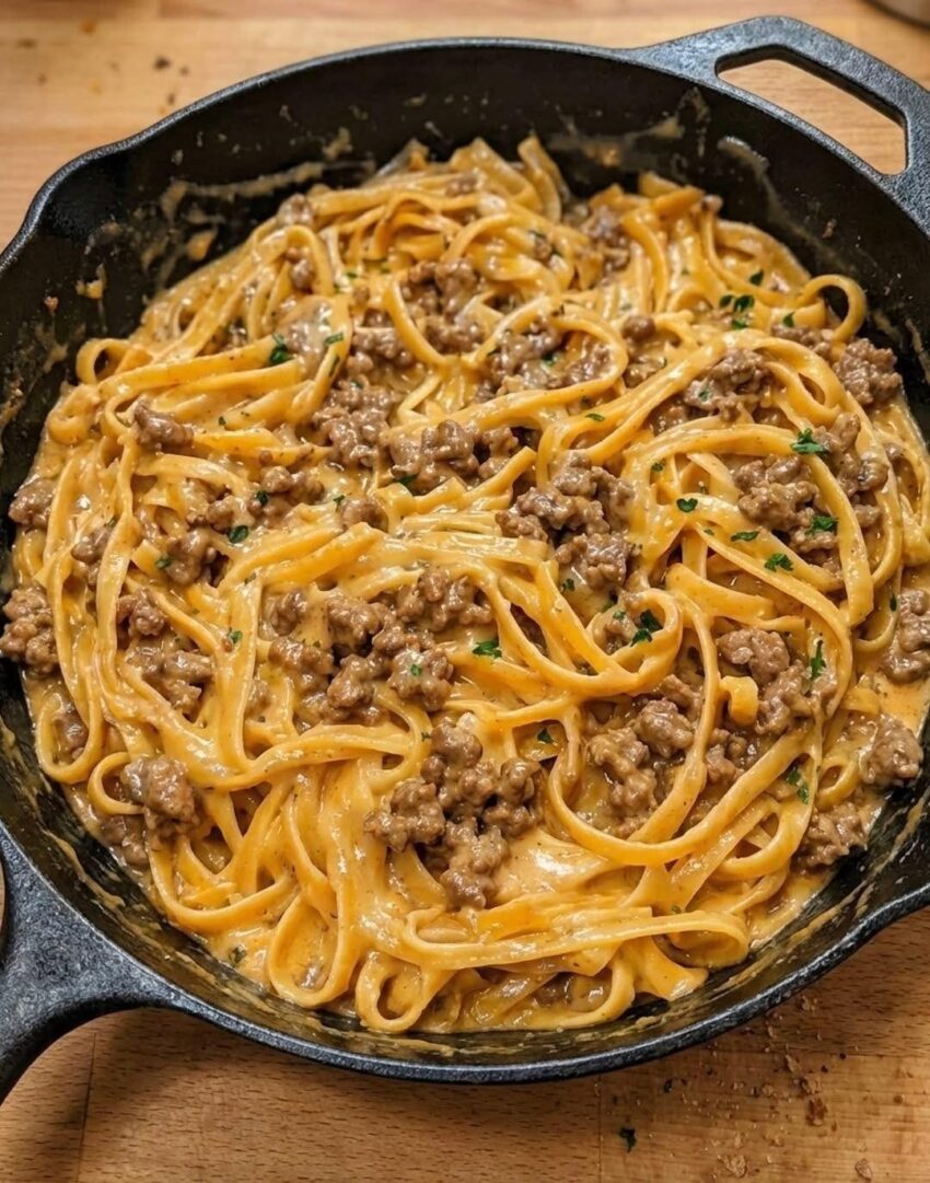 Here’s a detailed recipe for a One-Pot Creamy Beef and Garlic Butter Pasta—rich, flavorful, and minimal cleanup: