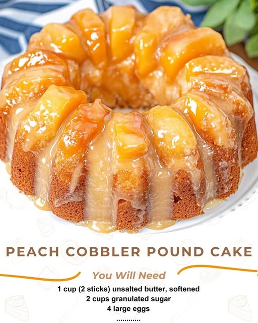 Here’s a Peach Cobbler Pound Cake recipe—moist, fruity, and buttery, combining the best of peach cobbler and pound cake 🍑🍰