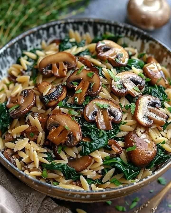 Here’s a simple, comforting Spinach Mushroom Orzo recipe—great as a light main or a flavorful side 🍄🌿